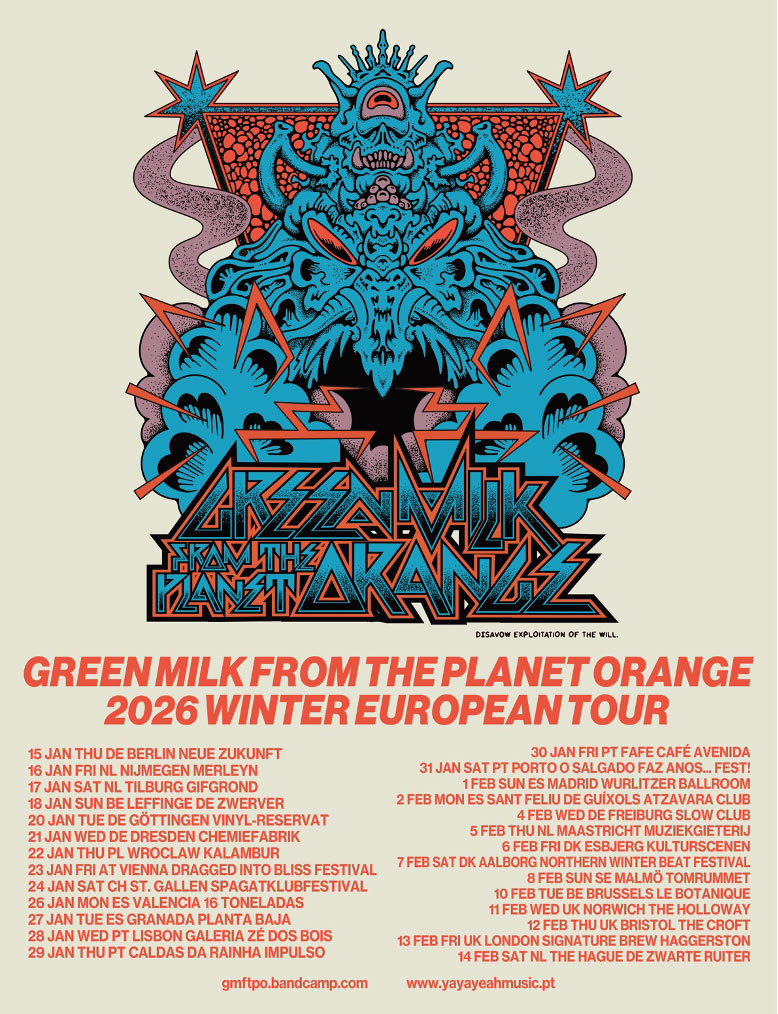 “Formed by Dead K. in 2001, Green Milk From The Planet Orange became one of the biggest Japanese prog-rock acts over the last two decades. Excited about the upcoming tour, A, the drummer of the band says: “Every time we tour, it’s thanks to the people who come to see us all over Europe, everyone involved, and so many others who support us. This time as well, we’ll turn our gratitude into sound and bring it to you!” While the current tour isn’t the first one for the band it would be one of the biggest covering 27 cities and 11 countries including Germany, the Netherlands, Belgium, Poland, Austria, Switzerland, Spain, Portugal, Denmark, Sweden and the UK” (well England in truth, and a small part of it, but the press release insists on telling us they’re in the UK, when I was growing up in Wales it bugged me like hell whe nso called UK tours never got beyond England).