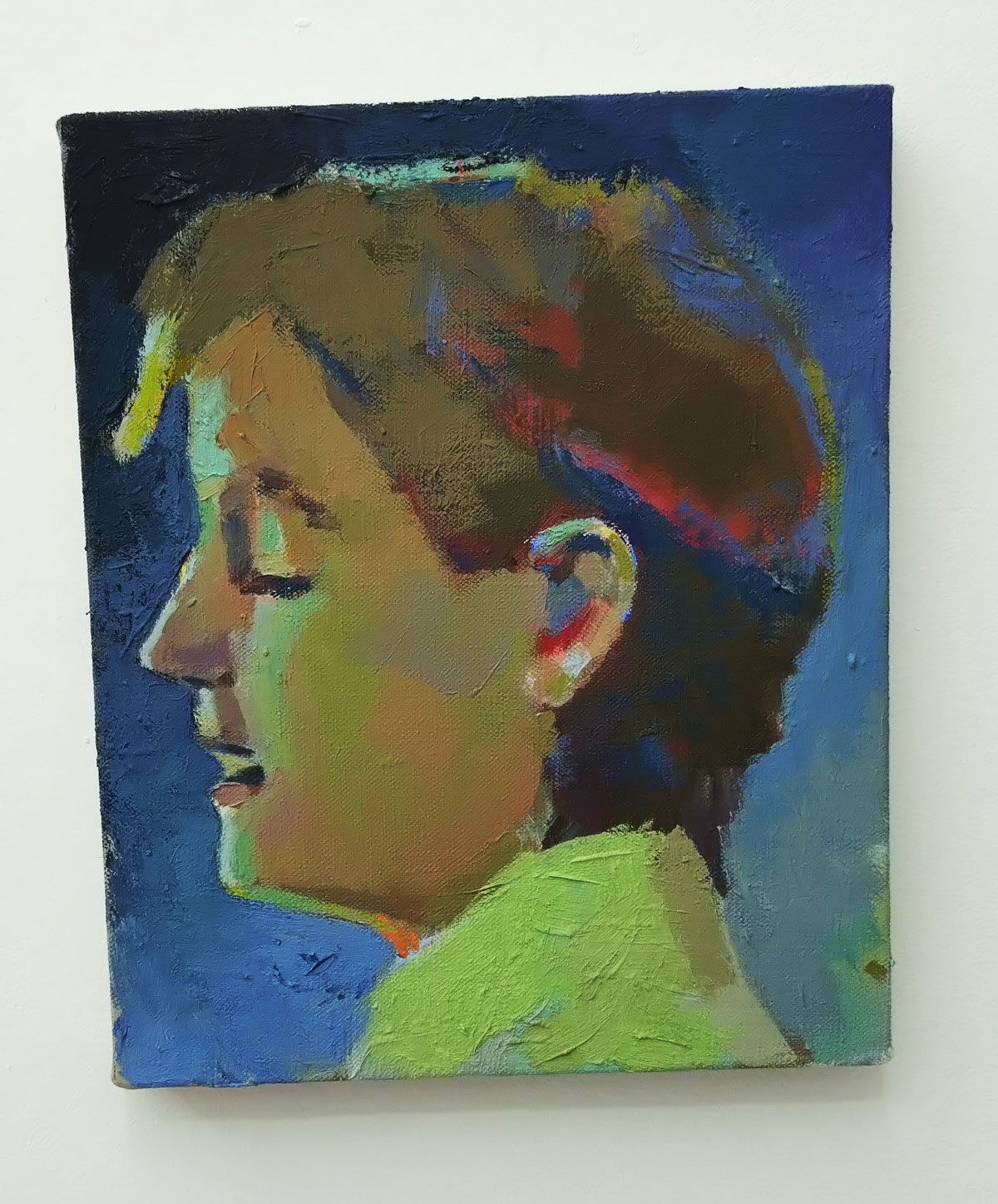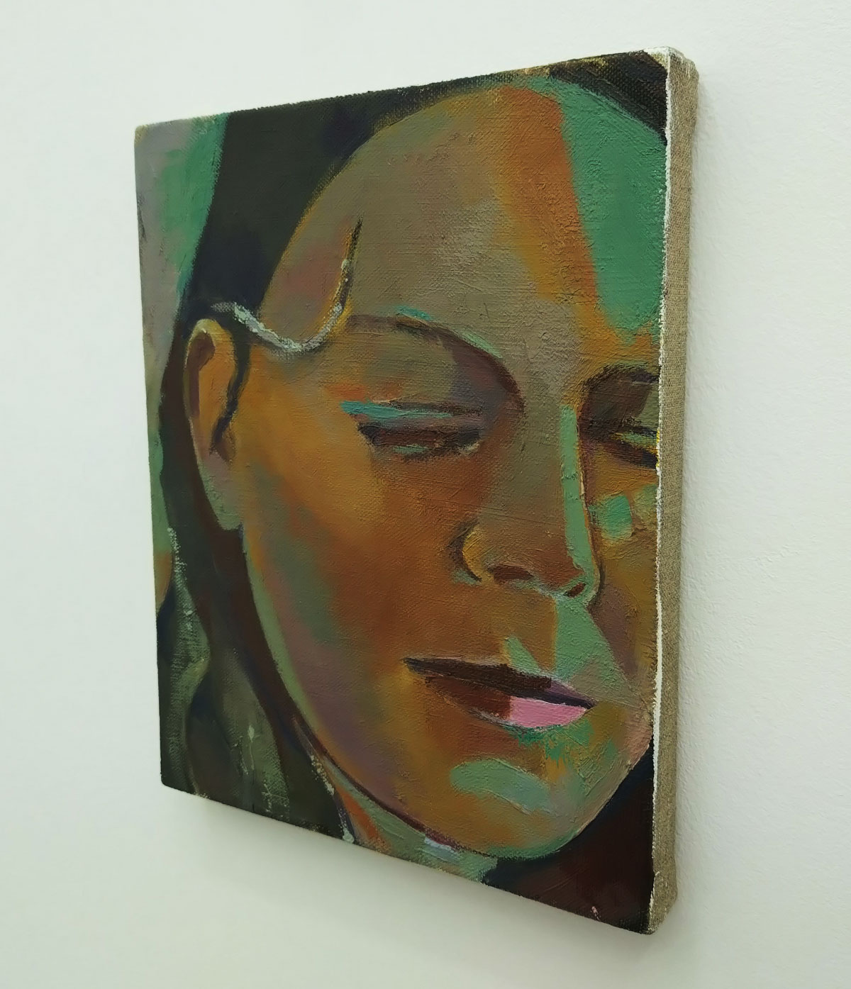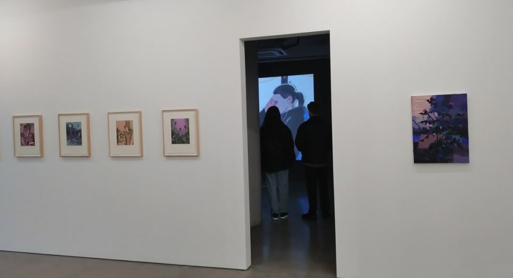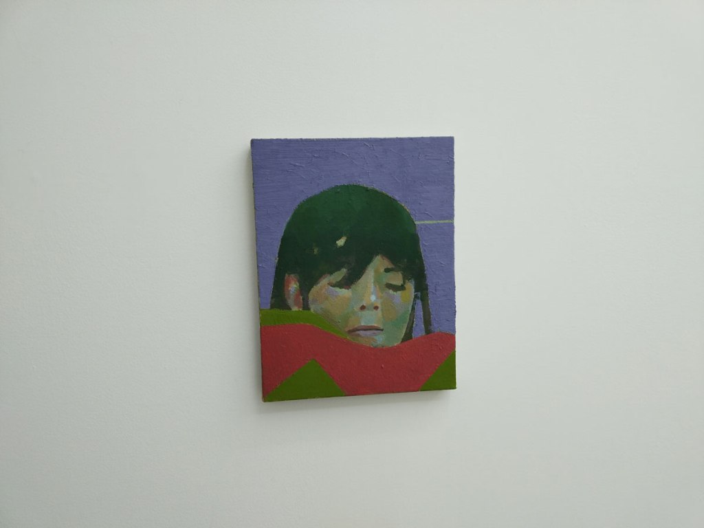Meanwhile over in the little glass fronted space tacked on the the end of Carlos/Ishikawa‘s main space, Los Angeles gallery Castle are the Condo guests and there’s a handful of modestly sized James Iveson paintings waiting to be explored if only the coffee-drinking curator or whoever he is would get out of the damn way. Don’t stand in the way with your back to the paintings having a chat with your mate in this tiny space, take it outside and let us see what’s on the wall. James Iveson is a British artist living and working in Los Angeles so I guess it make sense for an LA Gallery to be showing these pieces here in London, or does it? You know what, I’m really not sure I want to debate any of it, coffee drinking man not getting out of the way of these small portrait pieces or studies of people that kind of move between figuration and abstraction when I was clearly trying to get to see the painting behind him has annoyed me too much and I’m starting to think about catching the second half of the Spurs v West Ham match in the rather inviting pub I passed walking up to the gallery. Yes, there is a sensitivity here, yes they are rather nice little paintings, albeit dare I say a touch mundane. Yes, there is a rather expressive way with colour here, looks like Mr Iverson is enjoying the LA light as we try and look at his paintings in the January gloom and the fading light of East London. Yes there is something about these paintings and yes, if you get a chance it is rather worth checking his work out in the flesh rather than on line. Yes this show feels like a small taste, an appetiser, a prelude, just a little feel of what he might have to offer when the canvas gets bigger..