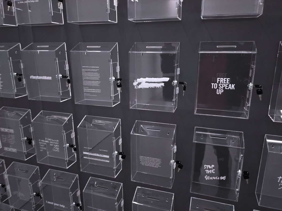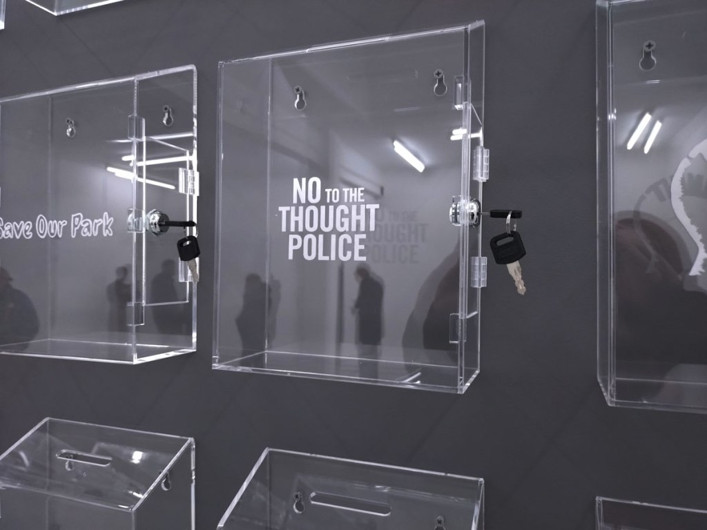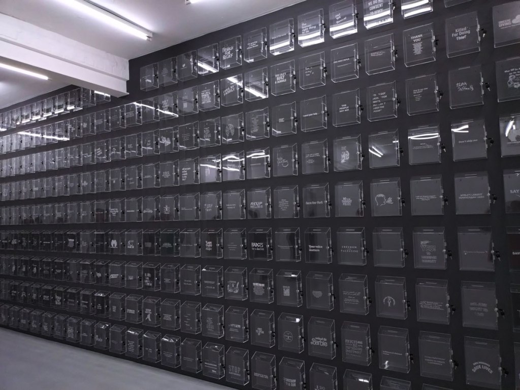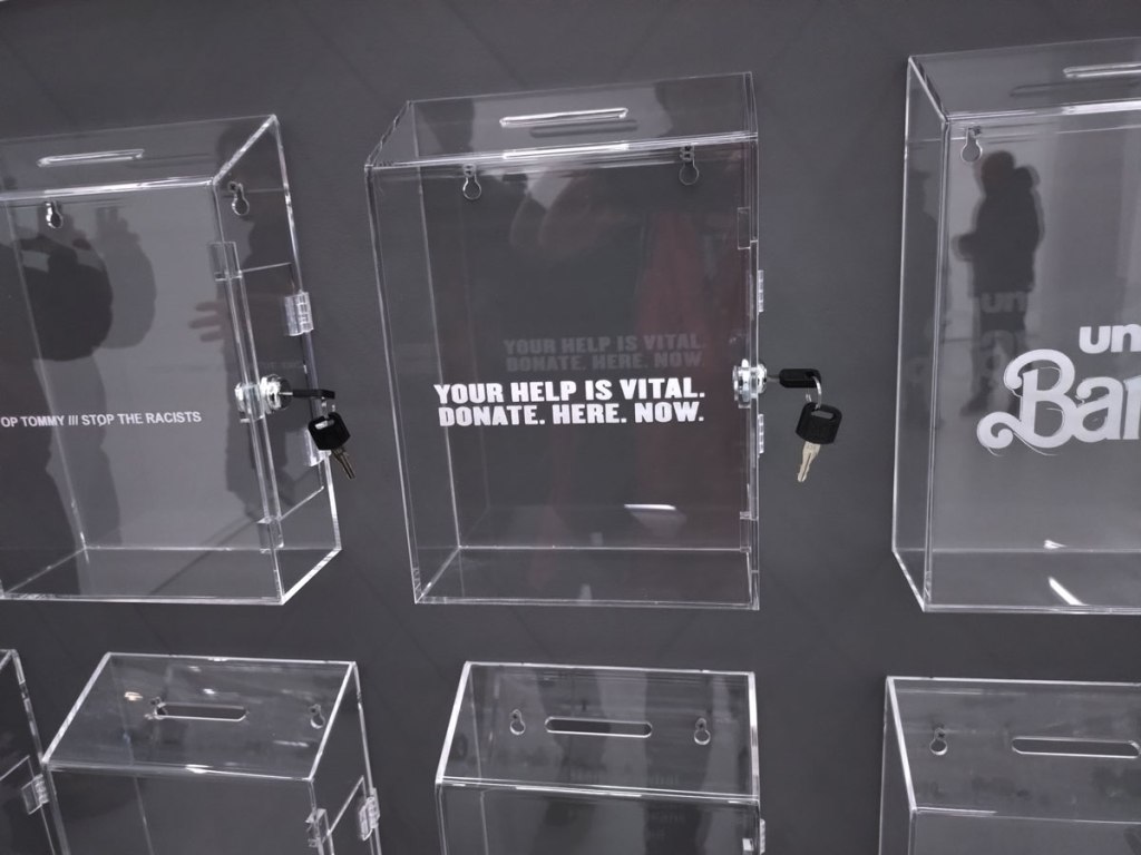On towards Whitechapel, hang on, what’s that over there on the other side of the street? A new gallery? Could be?! Indeed it is, no sign to say it is, no open door, no hint, if we hadn’t been on the other side of the road we’d have just walked past. A quick conversation with the polite enough host of the space and apparently it has been there almost two years now! I point out I’ve never seen it in any listings, nothing on sites like the oh so vital Ar Rabbit, apparently she doesn’t bother, apparently Art Rabbit isn’t cool, when pushed she says she’s just posts information on her Instagram account and doesn’t bother with listings or anything much else, another one of the too-cool-to-want-to-engage galleries and anyway the people at Art Rabbit don’t pick or chose, there’s is no editorial policy, you’re just able to list your show on there like most decent galleries do and then people like me see it and come to the shows, the platform isn’t perfect, it is an excellent place to list your show and for people to find out about shows, simple. But hey, she screws up her faces and tells Art Rabbit isn’t cool and she doesn’t like the kind of shows they list, I guess she doesn’t want the kind of people who use the site to vome ot er gallery either. Why is art in London so aloof? Hey, even if people follow a gallery on Instabloodygram they’re probably not going to see the posts, what is wrong with engaging with people? Do you just want your art school mates at your opening night and then to sit in an empty gallery for the rest of the month? Would you rather the rest of us not soil your floor. The gallery is called Naven for what anything is worth, find it hiding behind a shut door and no sign to tell you it is at 353 Cambridge Heath Road. I mean, a look at the Gallery not-heavily-followed Instagram feed suggests there just might have been an interesting show or two in the space but hey, if you don’t want to tell anyone then what the hell is the point? For the record the current show in the space is something called Object Permanence, a just opened solo show by New Zealand born London-based artist Nayan Patel that runs until the end of February, something to do the gentrification, urbanisation and the erosion of New Zealand’s culture. I guess the big silver ferns hint at it, not sure I would have got it without reading the text though, not sure if the art backs up the points well made in the text? And as polite as the conversation has been I’m kind of feeling a touch unwelcome in here and well, I hope the gallery survives, we need as many art galleries as we can get in this part of town. The fading East London gallery scene can be annoyingly frustrating these days…