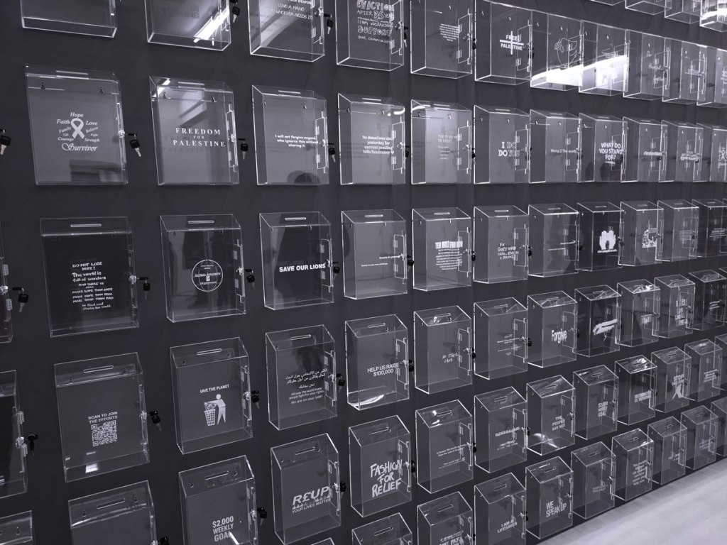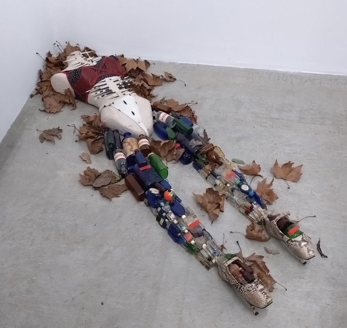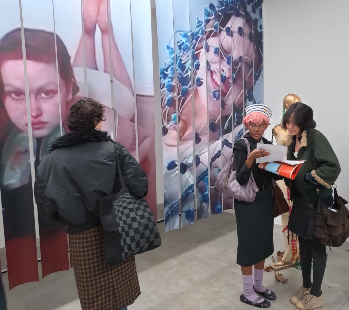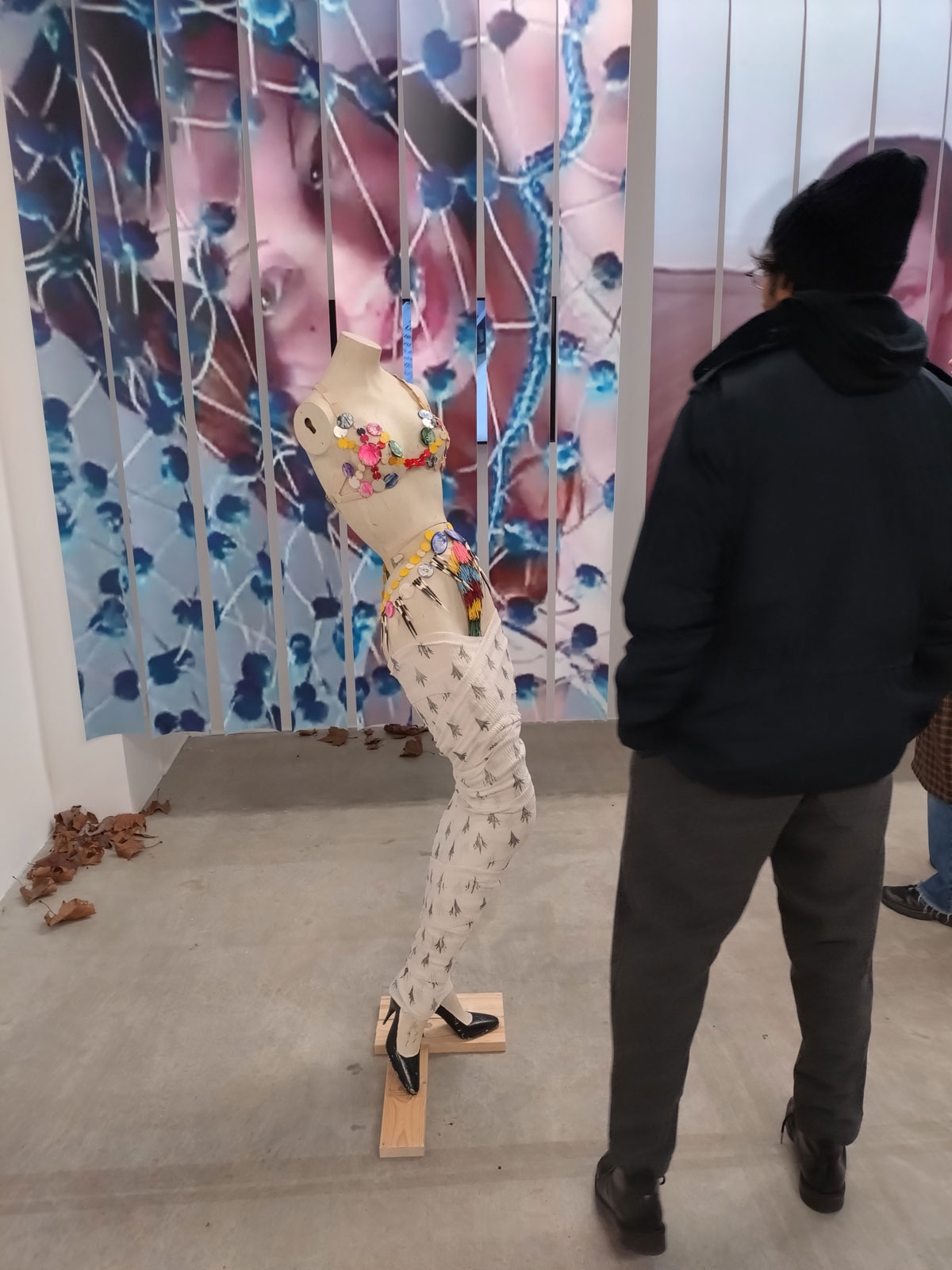 We left Part One, halfway through exploring the gallery known as Soft Opening, we were about to make that very short walk from that rather rewarding Sam Lipp exhibition to the smaller second hardly-ever-used room in the East London space just off the Hackney Road. For Condo 2026, and if you don’t know what Condo 2026 is maybe read Part One of this feature first – Condo 2026 Pt.1 – Exploring East London’s part in Condo, that and Sam Lipp at Soft Opening, Hana Miletić at The Approach alongside New York’s Margot Samel Gallery presenting the work of Leroy Johnson and Olivia Jia… – for Condo 2026 Soft Opening is hosting New York’s Company Gallery and their presentation of Needle Trades, the first solo exhibition in London by Women’s History Museum. The entry is guarded intriguingly or maybe enticingly by a pair of high heel shoes sitting quietly in a small pile of Autumn leaves on the gallery floor. Apparently the slightly strangely named artist duo came together in 2015; two artists, Mattie Barringer and Amanda McGowan, a self declared fashion-art duo who came together out of “the desire to create novel and previously unseen images of beauty”. Not sure if we’re seeing anything previously unseen or indeed that novel, it is rather intriguing though, it does make for an instant sugar hit in terms of the eye candy and the art rush although what’s left once the hit wares off I’m not really sure?