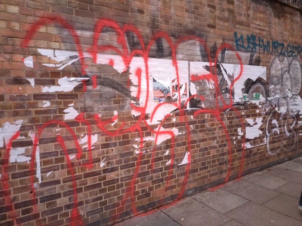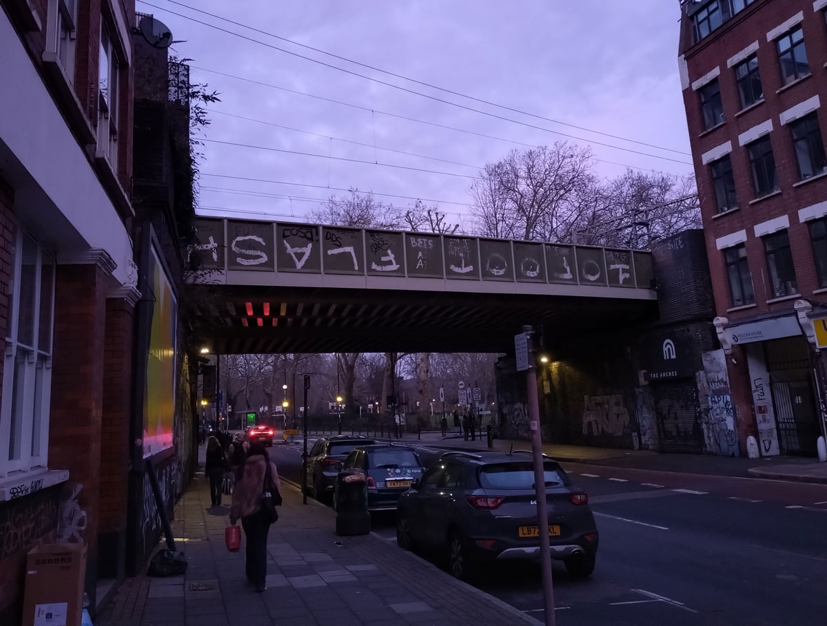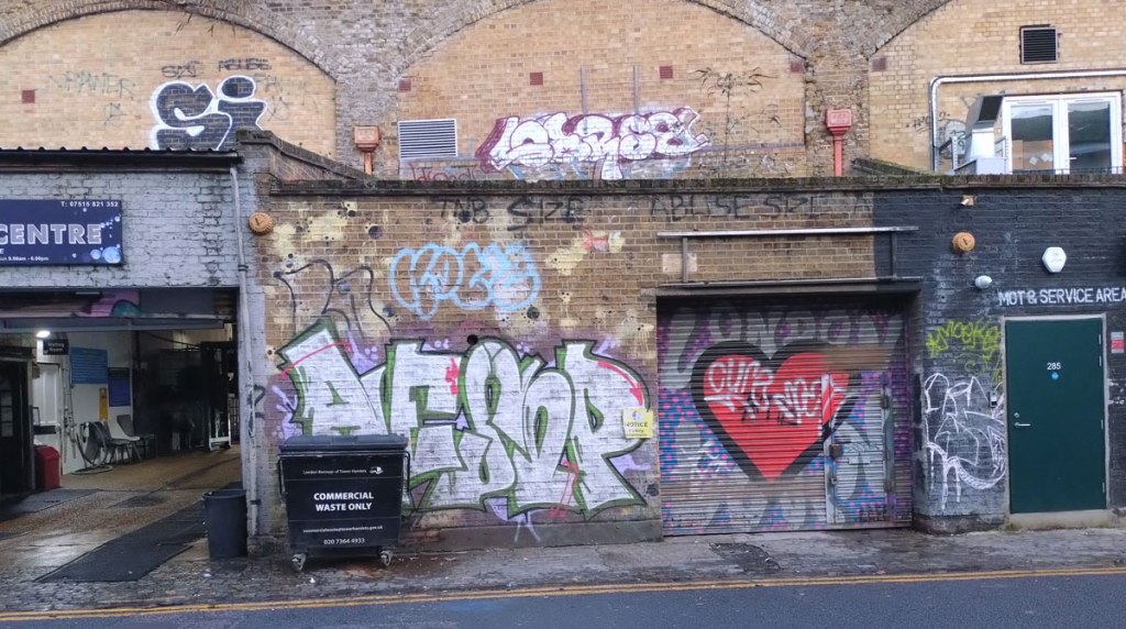 Next? Well the next Condo-hosting art space is Rose Easton Gallery further into Bethnal Green and halfway to Whitechapel but there are one or two non-Condo galleries to check before we arrive at the destination. The street art and graff along the arches under the railway on Clare Street seems to have slowed down in the last year, not so evolving as it once was, there’s no sign of life at IMT Gallery on the Cambridge Heath Road, website says the space is open, reality says something different.