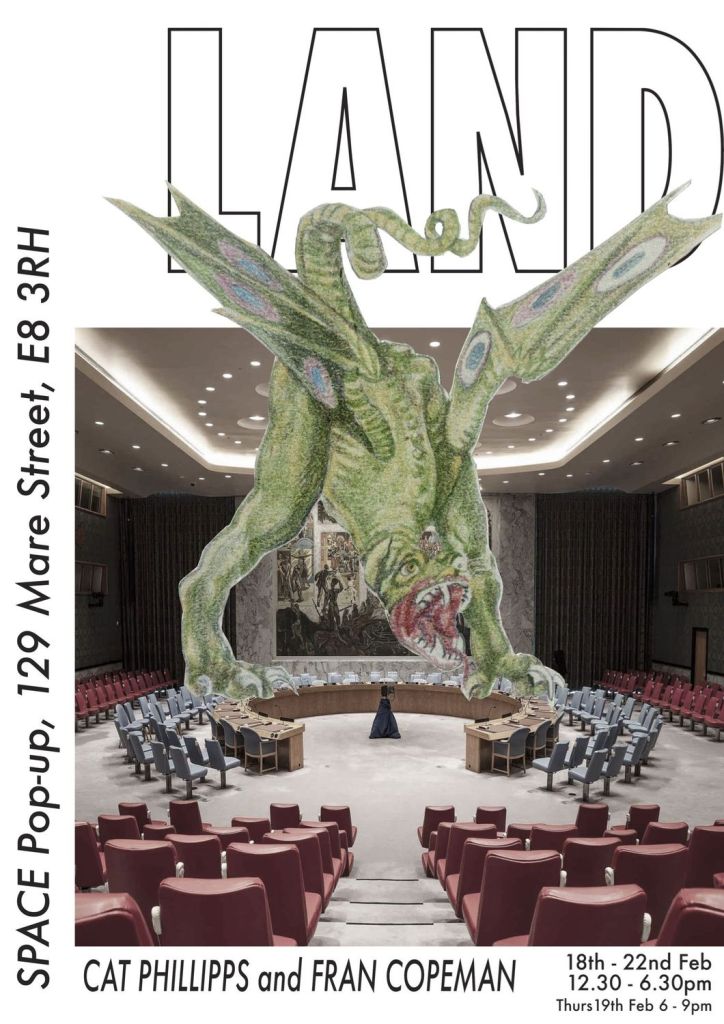 “Pushing the boundaries of scale and space within printmaking, Cat and Fran respond to this moment of historical turmoil, establishing a visual resistance to corporate power and land grabs. For Land they bring together two new large-scale works alongside a small publication”.