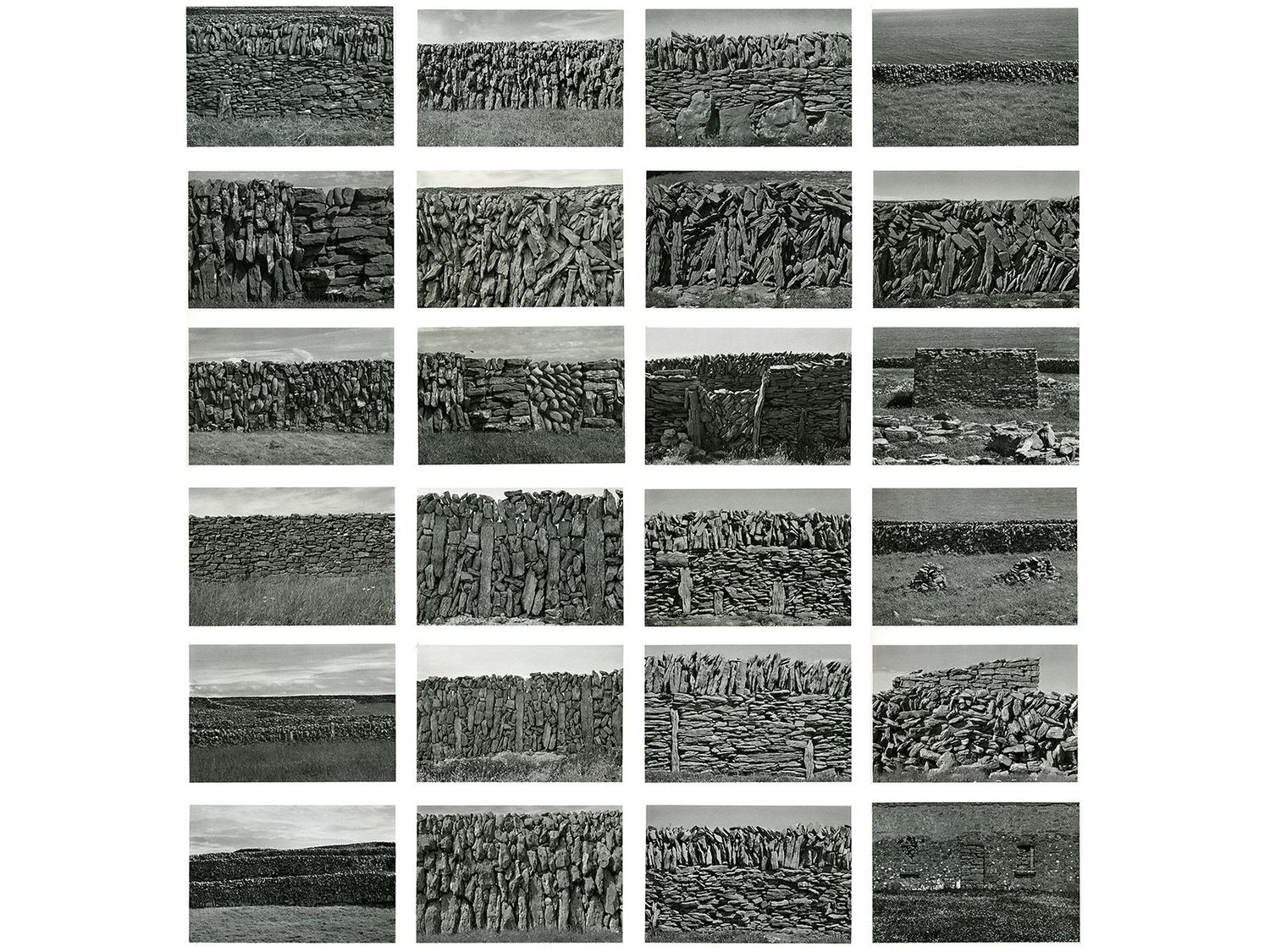 Photography is a constant throughout this landscape-inflected mini-survey, from Moroccan walls and Sienese doors through to shorelines and woodpiles, and is reiterated in the iconic 2005 Aran series of 24 black-and-white photographs taken on the eponymous island off the west coast of Ireland exhibited nearby. Scully’s affinity with the ancient traditions of layering and stacking present in the rough-hewn stacks of rocks, the horizontal bands and tessellating gestures that his photography reveals, becomes clear. Two large paintings, including a classic, five-banded Landline and another Moroccan-influenced oil on aluminium, complete the presentation”.