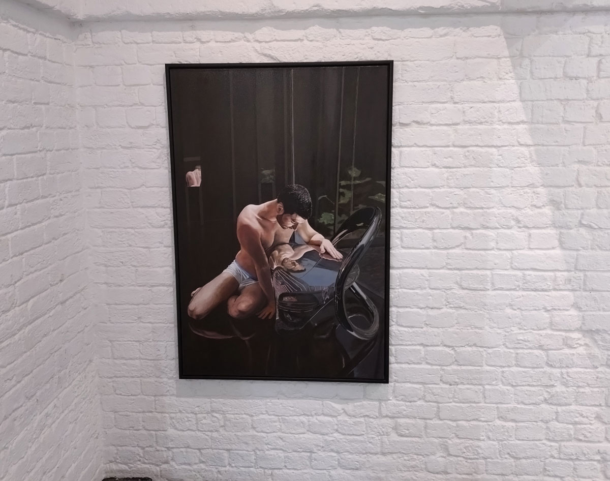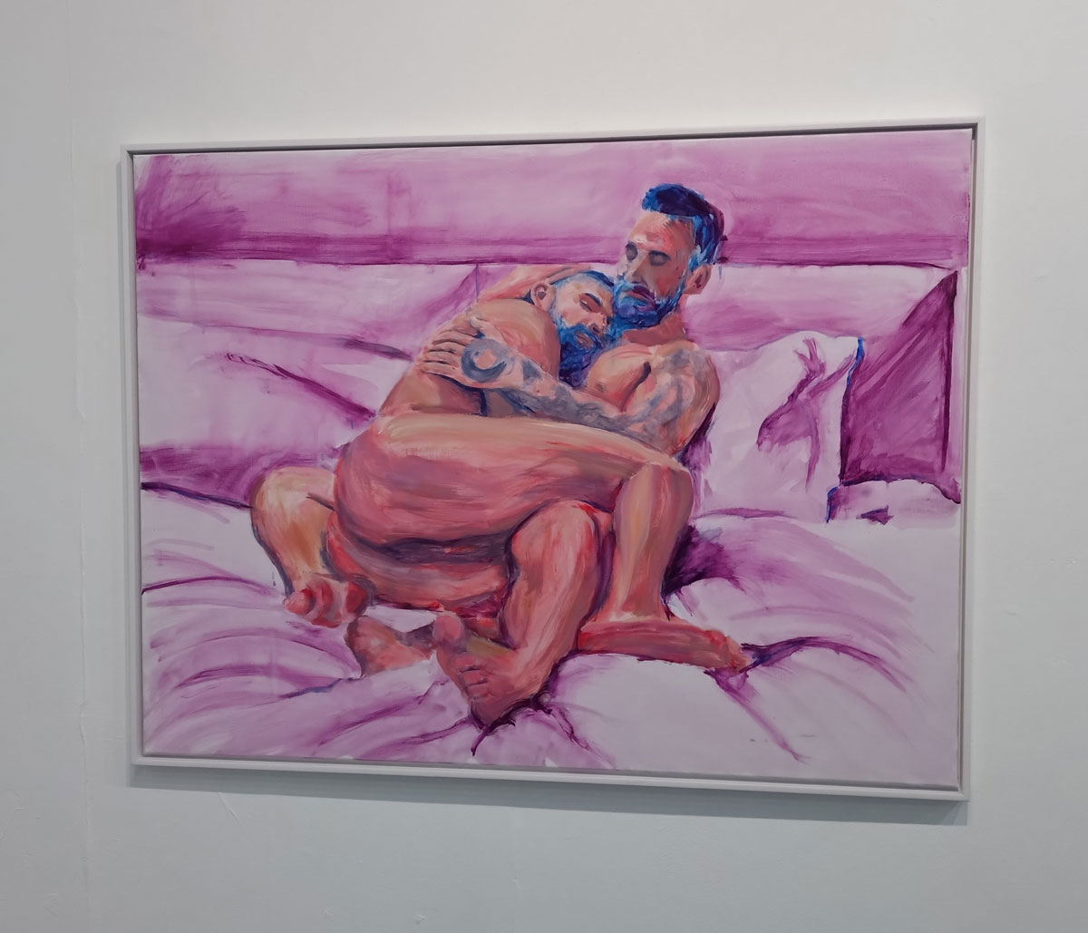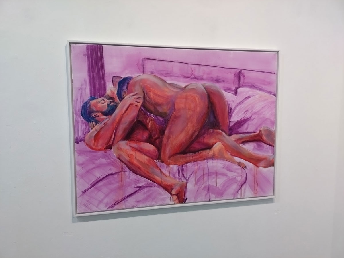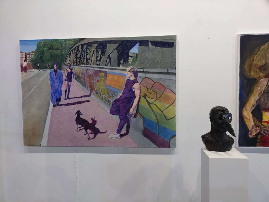 Paintings that include imagined scenes of heaven from a queer viewpoint, alongside landscapes inspired by an episode of the 1969 TV series Civilisation, entitled The Worship of Nature. “An animatronic beating heart encased in a ceramic shell raises the question of whether we truly need love to be happy”, the heart, as good as it looks, only distracted from the paintings and especially that bridge painting for a moment. Paintings that really do speak for themselves in terms of the subjects, the suggestions, the ideas of worship or relationships, in terms of their strength, their movement, this show is only on until Tuesday so let’s rush these words and get them on line while the show is still on…
