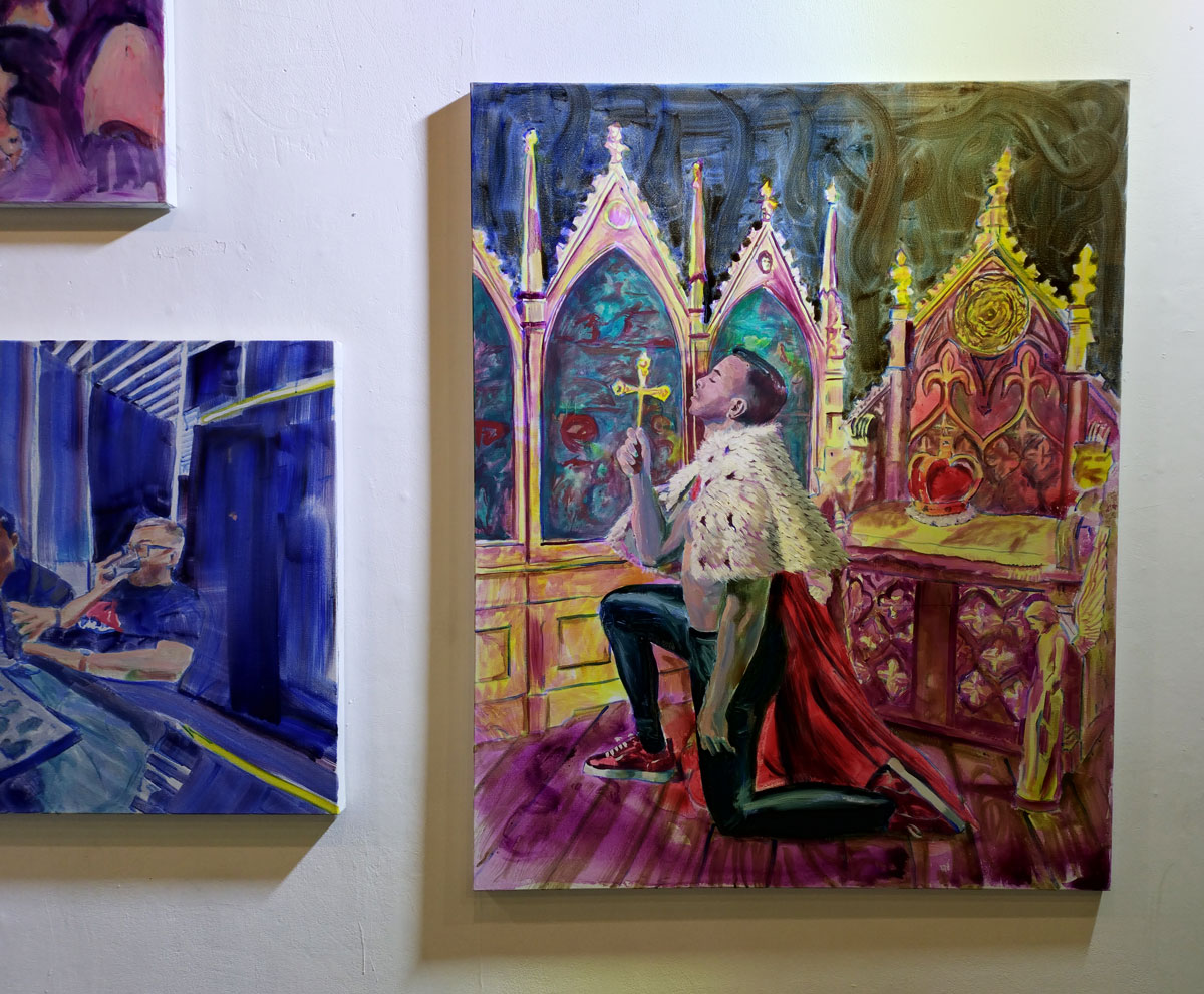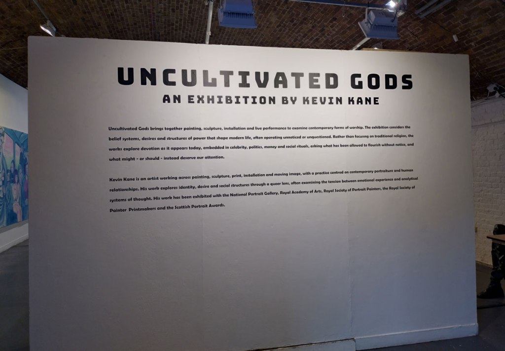 “Uncultivated Gods is a new exhibition by Kevin Kane, bringing together painting, sculpture, installation and live performance to examine contemporary forms of worship. The exhibition considers the belief systems, desires and structures of power that shape modern life, often operating unnoticed or unquestioned. Rather than focusing on traditional religion, the works explore devotion as it appears today, embedded in celebrity, politics, money and social rituals, asking what has been allowed to flourish without notice, and what might – or should – instead deserve our attention”.