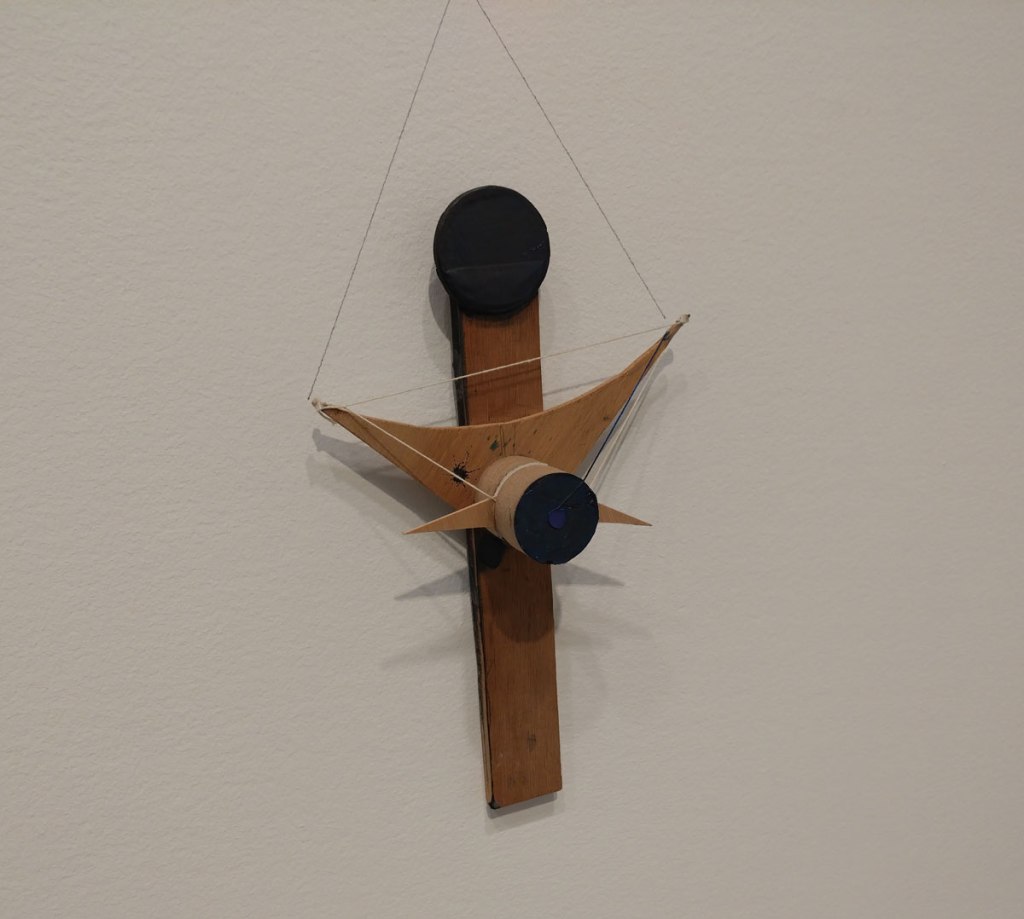 The very busy Tetsumi Kudo show bares very little in terms of relation to the peace and quiet, the pace and the space of the Takesada Matsutani exhibition besides the obvious aforementioned fact that they are both Japanese and both work (or worked) in Paris and the fact that they are both intriguing rewarding as well a provoking exhibitions. The Kudo show is alive with sound, with colour, with bird cages, with intense visual stimulation, with mystic, with the what and the why of it all, with the questions and yes, you could say the two shows are united in the fact that they really are rather like nothing else, that already mentioned Gutai spirit and thatr need to do what no one has done before…