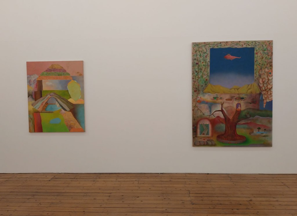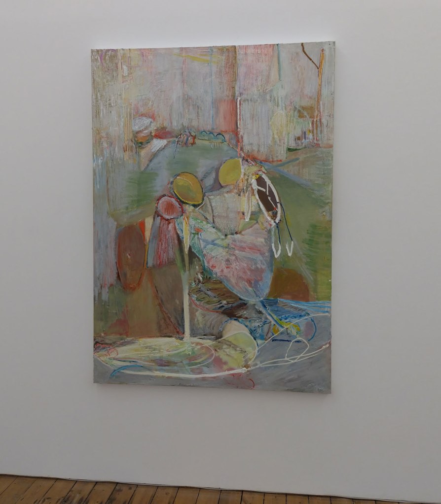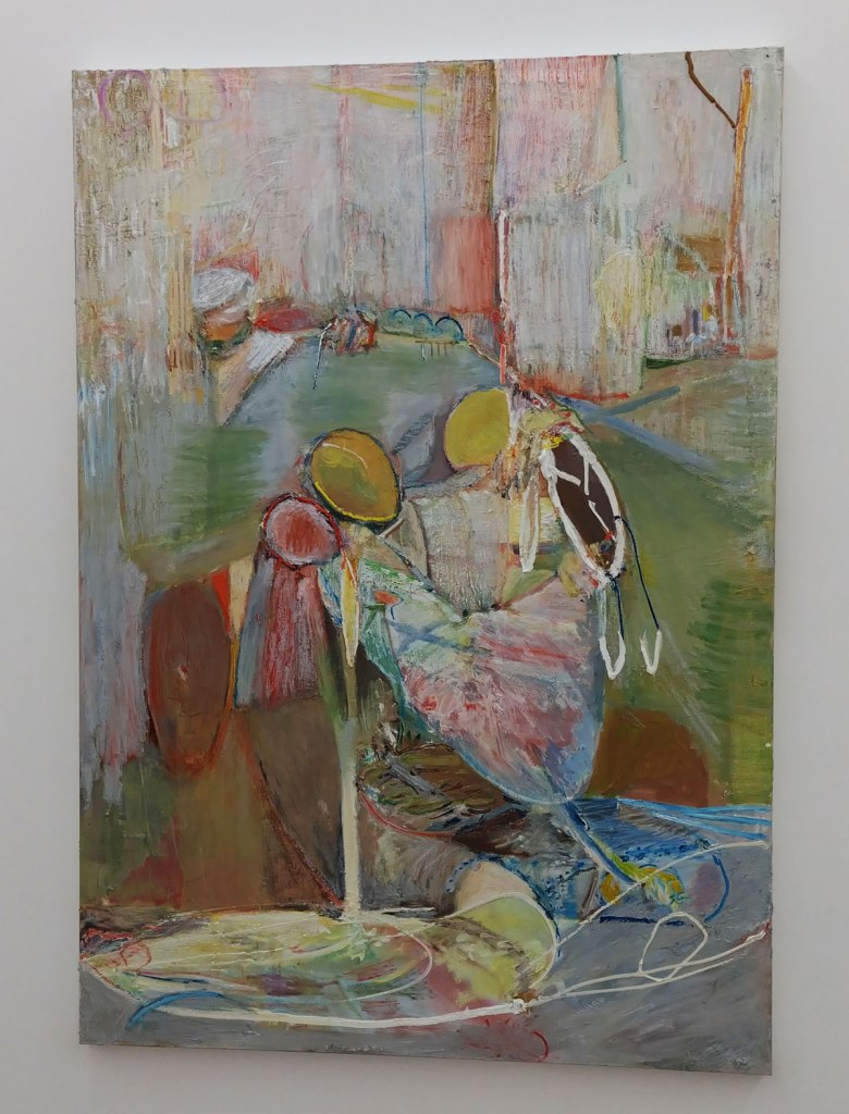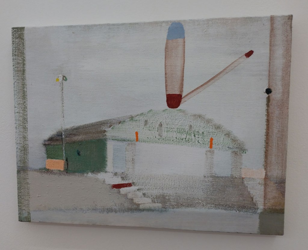 “Thinking of somewhere else brings together Milton Avery, Gabriella Boyd, Anna Glantz, Merlin James and Stephen McKenna; five artists from different generations who attempt to translate our sensory experience of the world into painting. Positioned between abstraction and figuration, the works in the show articulate form through fields of colour, spatial relationships and tonal variations. The works are suggestive of architecture or landscape, yet remain undefined and ambiguous. Painting is approached not as a mode of pure representation, but as a means of revealing connections between vision, memory and language….” so the show statement tells us. And yes, there’s are conversations between the pieces and yes there is art that has some gravitas in terms of history, in terms of the talk, Milton Avery in particular was an artist of influence in terms of American modernism but really, am I that excited here? I know I should be being respectful, I should maybe be stroking my chin, I should be reverential, I should, I guess, be feeling rather privileged to see this in the East End of London, thankful even. I should be pleased to see Gabriella Boyd’s recent dream-like compositions that “blend figuration with abstraction” alongside the work of Milton Avery or Stephen McKenna and his reflecting of the ideas of the 1960s avant-garde that absorbed the legacy of both Surrealism and the influence of European pop culture back there.