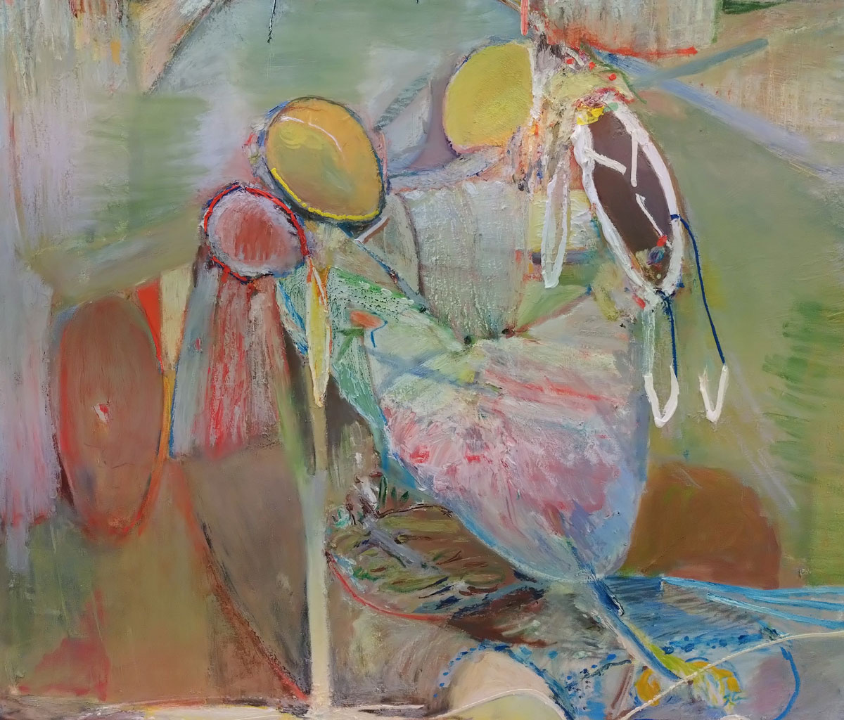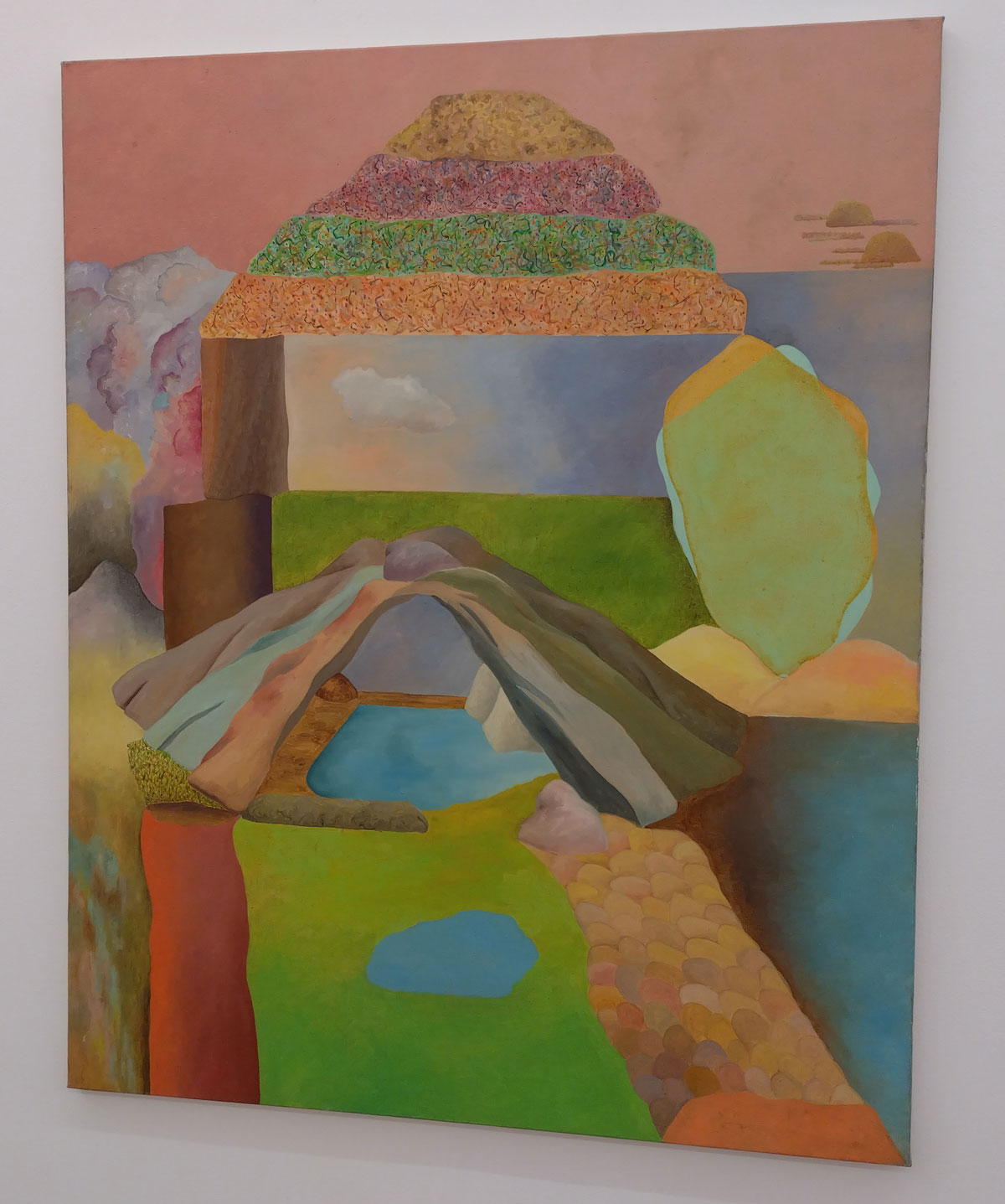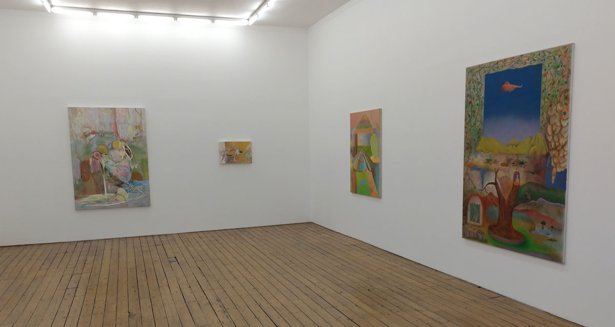 “Thinking of somewhere else brings together Milton Avery, Gabriella Boyd, Anna Glantz, Merlin James and Stephen McKenna; five artists from different generations who attempt to translate our sensory experience of the world into painting. Positioned between abstraction and figuration, the works in the show articulate form through fields of colour, spatial relationships and tonal variations. The works are suggestive of architecture or landscape, yet remain undefined and ambiguous. Painting is approached not as a mode of pure representation, but as a means of revealing connections between vision, memory and language….” so the show statement tells us. And yes, there’s are conversations between the pieces and yes there is art that has some gravitas in terms of history, in terms of the talk, Milton Avery in particular was an artist of influence in terms of American modernism but really, am I that excited here? I know I should be being respectful, I should maybe be stroking my chin, I should be reverential, I should, I guess, be feeling rather privileged to see this in the East End of London, thankful even. I should be pleased to see Gabriella Boyd’s recent dream-like compositions that “blend figuration with abstraction” alongside the work of Milton Avery or Stephen McKenna and his reflecting of the ideas of the 1960s avant-garde that absorbed the legacy of both Surrealism and the influence of European pop culture back there.