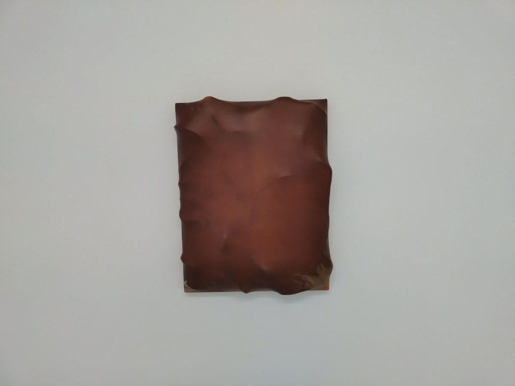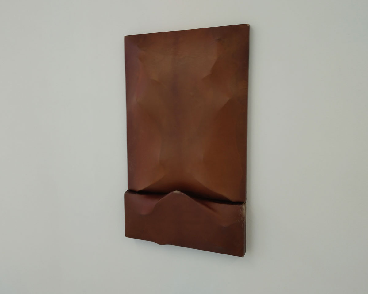 I guess we should read something into the title of the show, In guts and heads, but then it is surely better to read nothing and just experience this exhibition with no real idea, with no thought on what it might be. This is a show just to walk in on and be with, it really is perfectly hung, lit and presented, this is just the right place to see it, to experience it, to be with it, To be with the Swiss-Dutch artist’s (new) series of leather and glycerin sculptures that explores the body, skin, emotional projection and a lot more besides, to be with the tension between intimacy and discomfort of both her work and the viewing of it, the material of it all, the sensation(s).