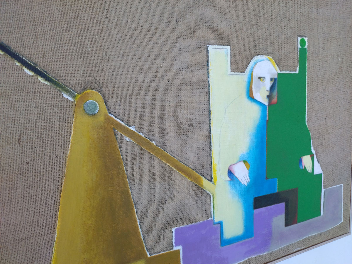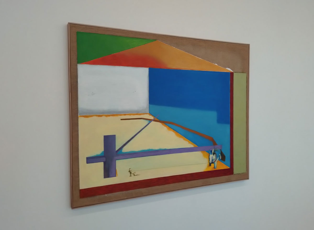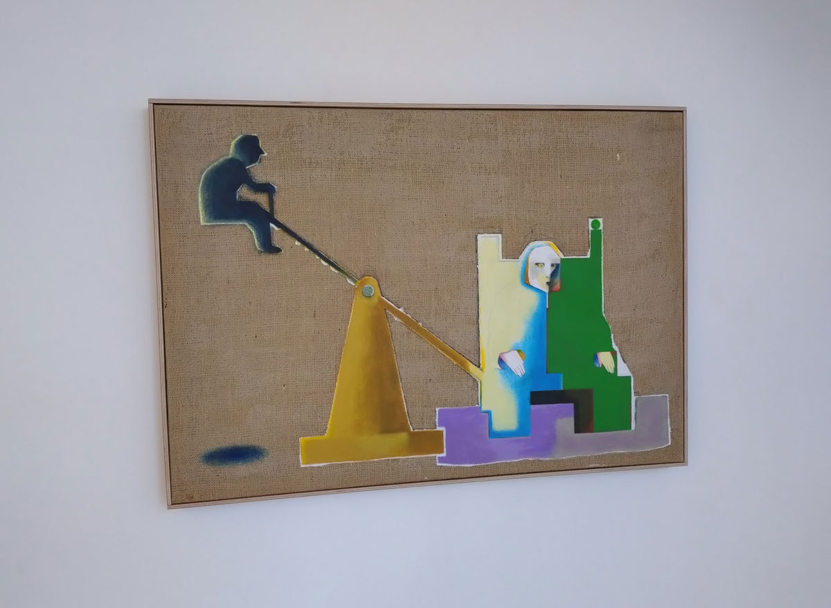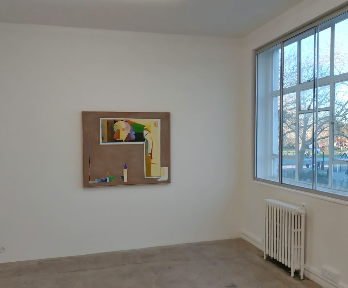 Not really sure about this small Mirak Jamal exhibition that’s been occupying the the small of the two galleries since the third week of March. The Tehran-born Berlin-based artist who grew up in the USSR, Germany, the USA and Canada presents a selection of pieces, paintings that can be read in a number of ways should you wish to, question is, do you wish to? Do these pieces really want you to read them, to engage with them? Do we want to unfold the various narratives? Do those various explorations around scale and the architecture of it all really say anything? Do they want to? Does art have to engage? Do his habitats register as anything? Does his colour? Shall we turn left instead? how does all this end up in an old industrial building on an East London street anyway?