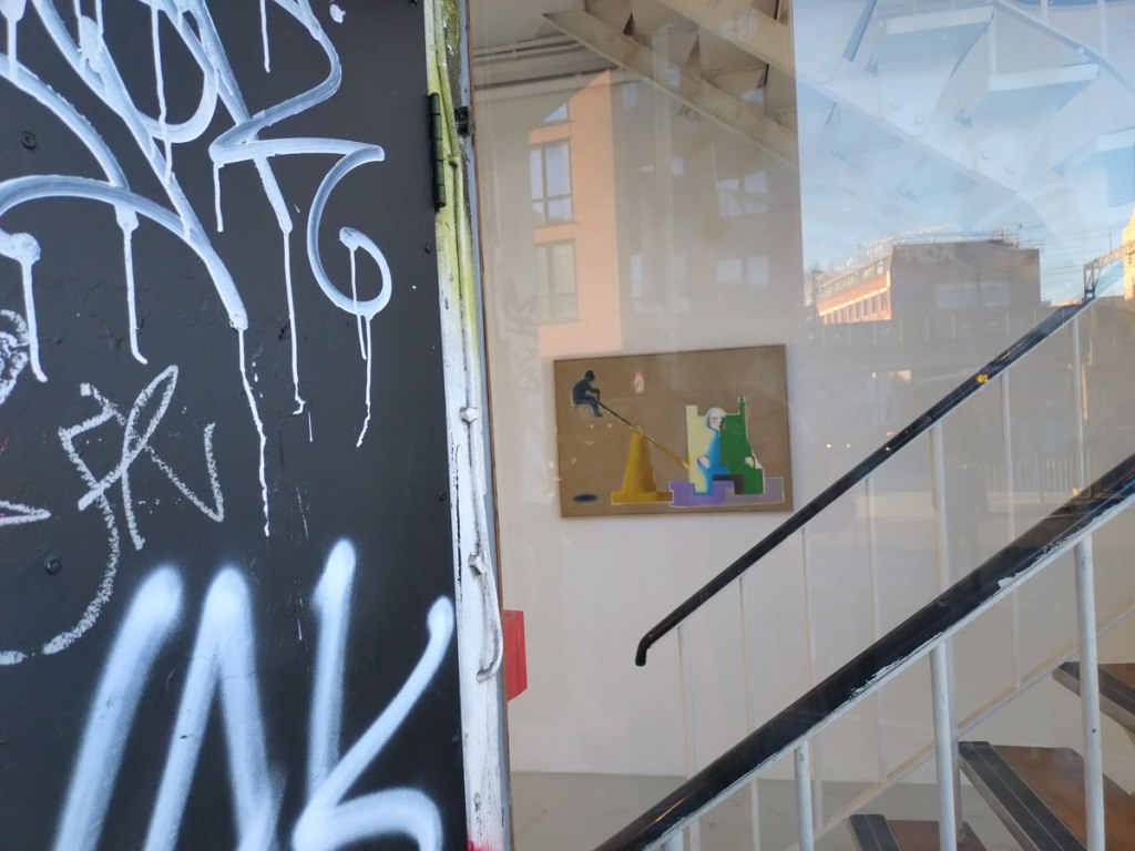 Two more shows, one to the left, one to the right as you walk up those stairs. Which one first? I always find myself turning to the smaller of the two spaces first, do like the way that the rawness of that room hasn’t been messed with too much, it adds rather than distracts, kind of like the that Rose Easton font and the graphics that run through all the shows. Can’t say everything encountered in terms of the actual art exhibited in this space works, it does almost always challenge though, it always throws up a question or two.