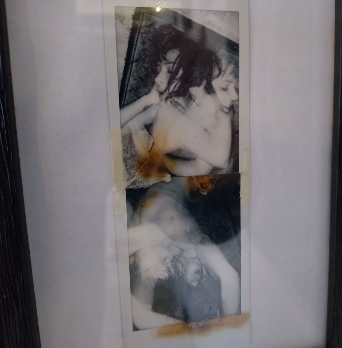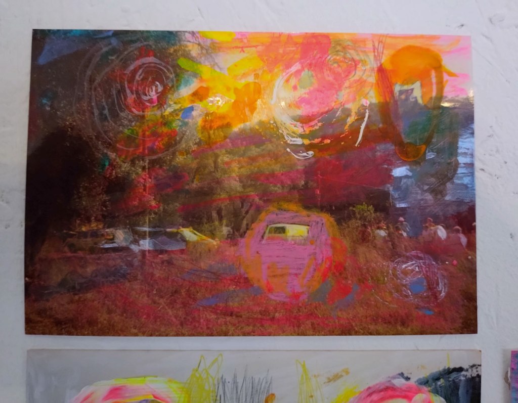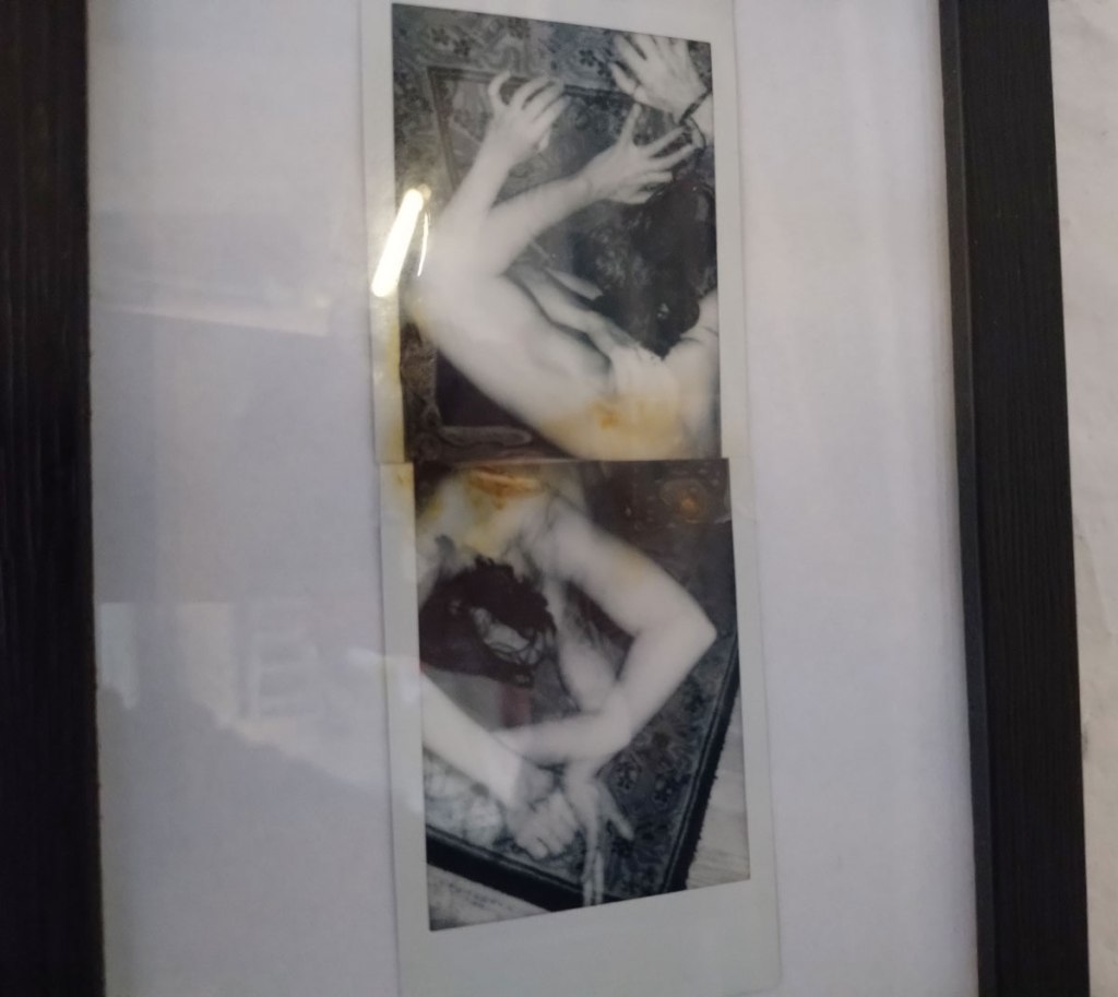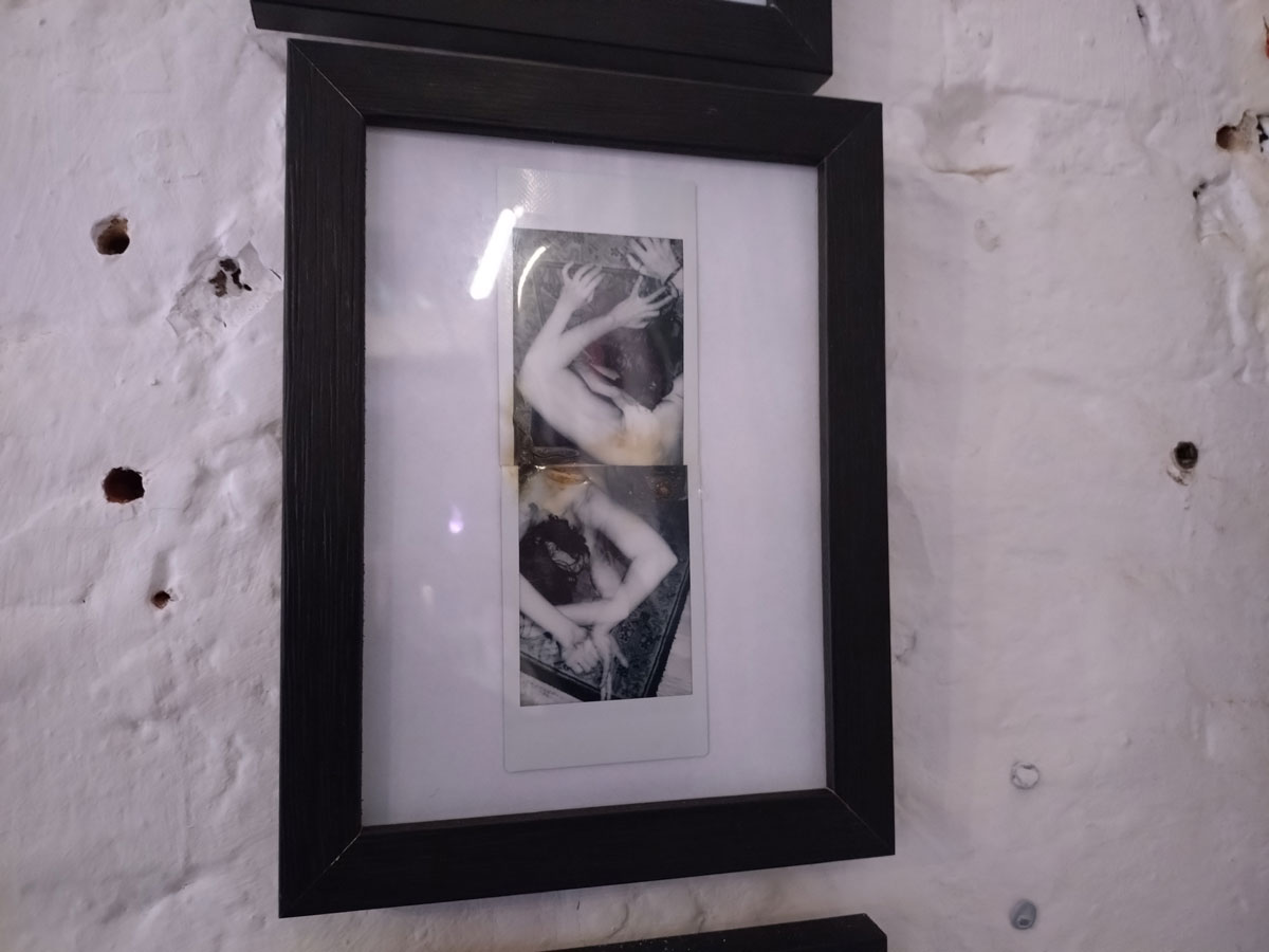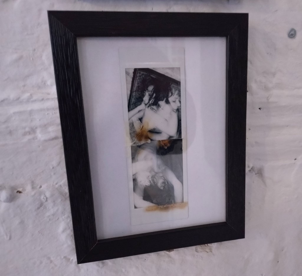 Over in the corner and demanding you spend a quiet moment with them there’s more of Sofia Martins Gray‘s very personal painting with her Polaroid camera, another Cultivate regular and another mystery. Unlike the band she fronts, Starsha Lee, Sofia’s paintings – I guess we really should, for the sake of clarity, call them photographs – unlike her band Starsha Lee, Sofia’s paintings are to quietly contemplate, to stand in the corner with peacefully and quietly explore (and try to read) without distraction. She really does paint with her cameras and her film stock and what she does with those photographs, the was she assembles her pieces.