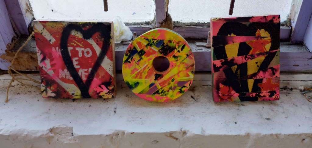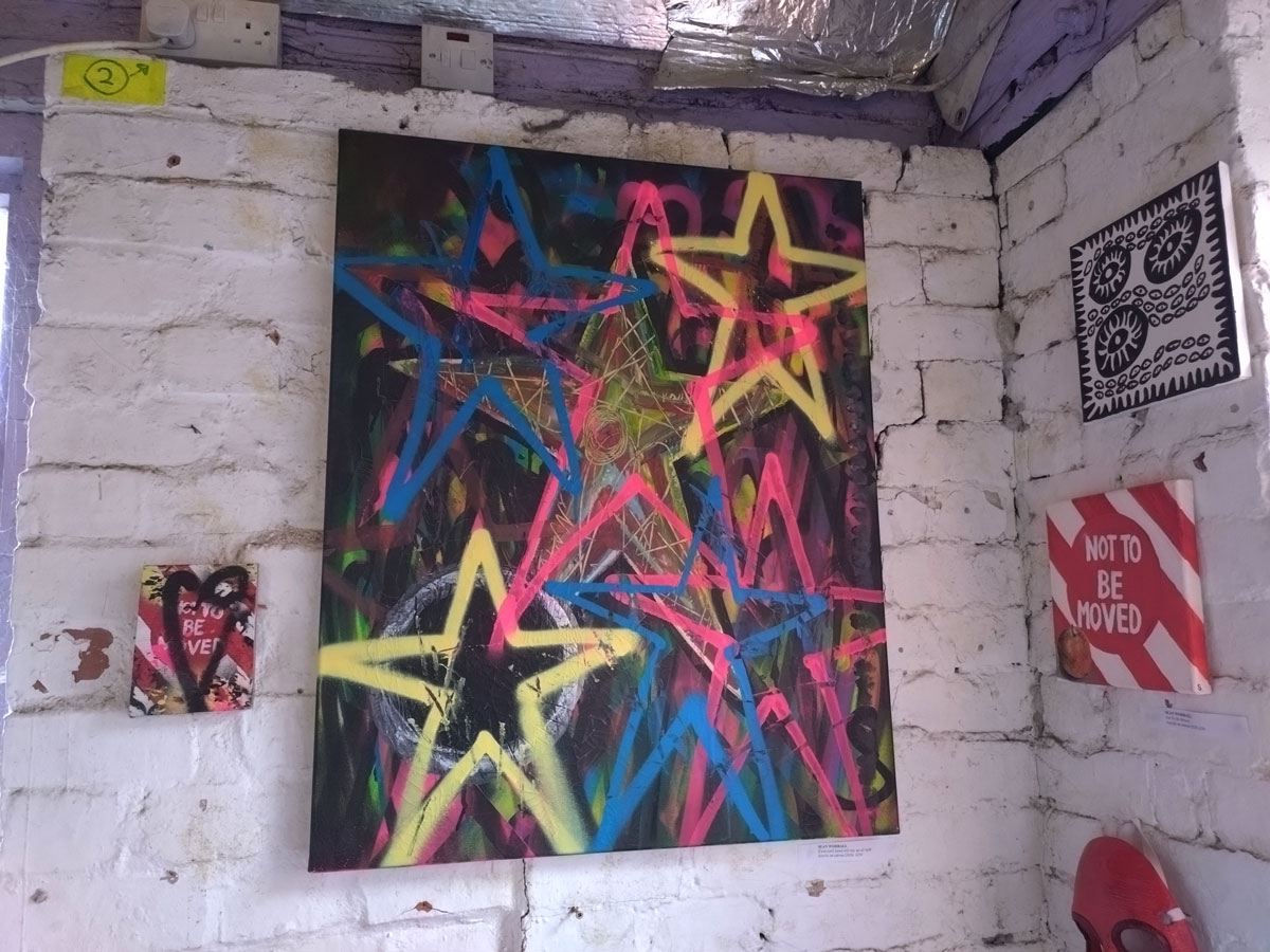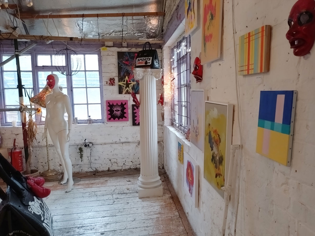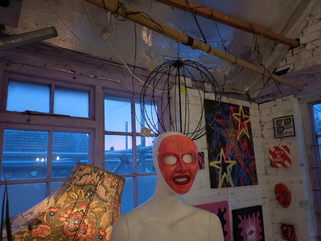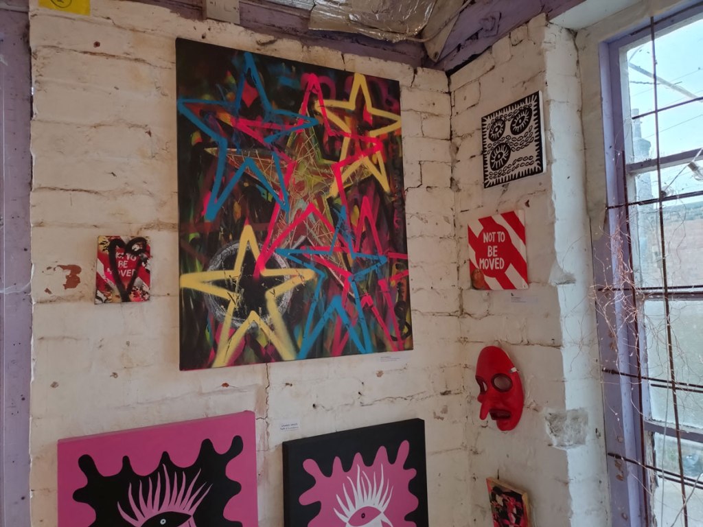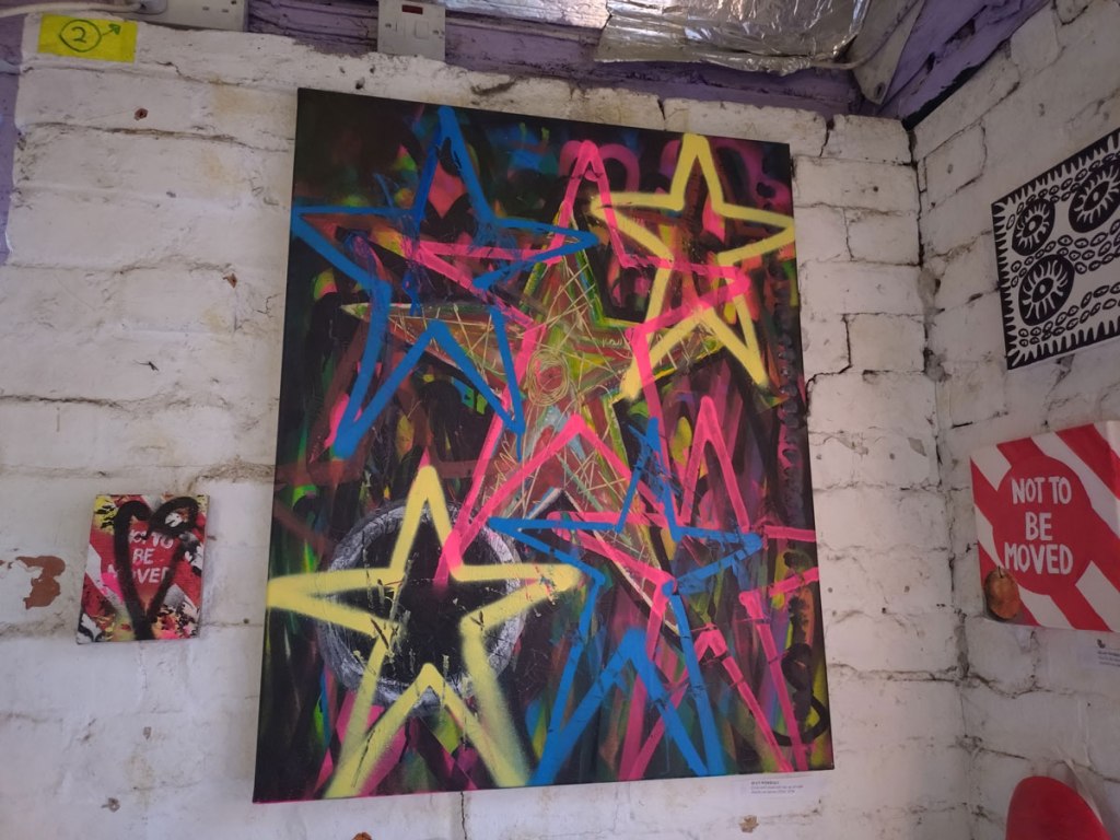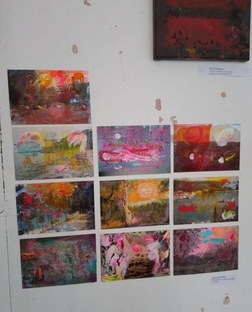 Cultivate presents Explore – A group show at Free The Gallery, Crystal Palace, SE London, April 2026 – And so Explore happened, fourteen artists and another Cultivate exhibition, this time in a rather marvellous space called Free The Gallery over in Crystal Palace. From my point of view as both participating artist and curator it was quite a frantic long weekend, well a bit more than just a long weekend, these things don’t just happen, there’s lots that needs to happen before we even get to the space and start of the install and the hanging of it all. There’s all the selecting and inviting of the artists, all the this, the that and the other and it never quite works when you are both a both participating artist and the one pulling all the strings and putting the screws into the rather delicate wall (and thinking that maybe the next one will be the once that causes the whole building to finally come crashing down). Just off the Crystal Palace Triangle or inside the Triangle or something to do with a triangle up a steep hill and then down a hill in some sort of old stables or old industrial space or something, a building these days mostly held together with scaffolding, that and old bits of polystyrene dinosaurs, a gloriously old DIY space that kind of reminds those of us who were there, how good Hackney Wick once was when no one took any notice of the place and left us to it.