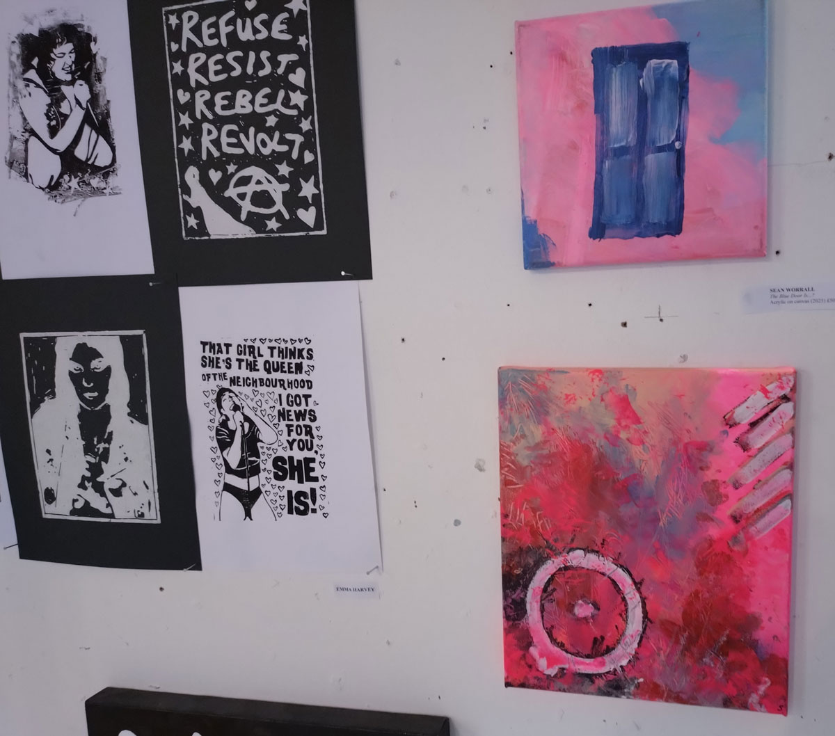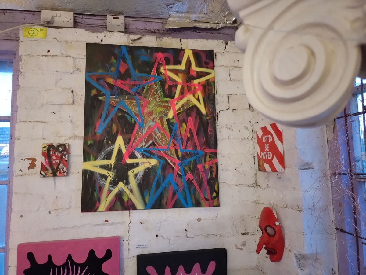 Now of course we like the work of all the artists, they wouldn’t have been invited if that wasn’t the case, we are very (very) picky about these things and the whole body of art has to work as one whole thing in the space; groups show really need to work as one whole thing or they just don’t work and this space is far from a formal white cube, this is not a place for a neat and tidy regimented hang, this is not a place where you do things ‘properly’ and yes, the conversations between the pieces are going to be loud. I didn’t get it right, I probably should have locked the artists out and not been so accommodating, these things can’t be democratic, there can’t be other opinions flying at you, too many cooks and I had to live with the results all weekend. I did have it almost right at one point mid afternoon during the hang until other opinions were offered and last minute demands kind of made. I didn’t like the hang, I wasn’t happy with my own art and I wasn’t happy with where my art was, I wasn’t happy with where quite a few pieces were, I was tempted to rehang the whole thing after the opening night, I probably would have done if it had been practical to do so, if the show has been on for more than just the weekend then I probably would have done.